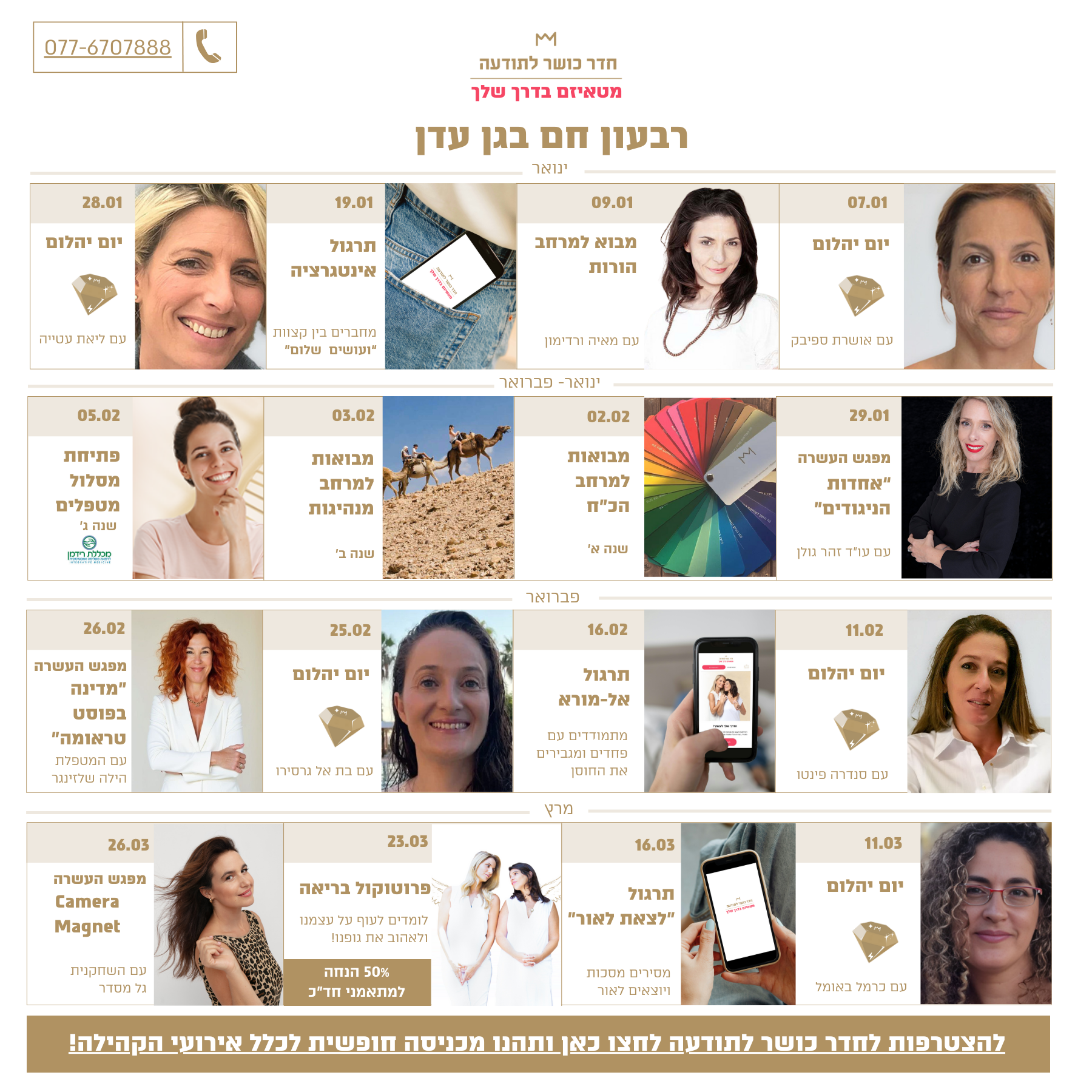 "קידוד הגשמה שינה את חיי. הצלחתי לצלול עמוק ולהתמיר דפוסים עתיקים שעיכבו אותי במשך שנים. משכתי עבודה חדשה ומדויקת שבה אני משתכרת בשפע וקמה יום יום לתקן את העולם ולהגשים היעוד שלי באושר גדול"
